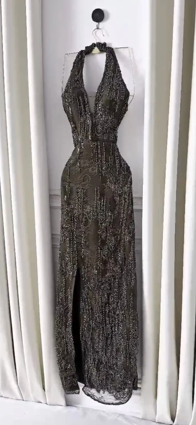 الصفحة الرئيسية اثاث فستان دانتيل فاخر مُرصع بالخرز